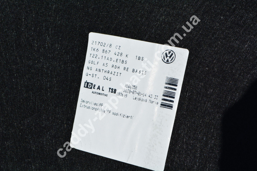 Обивка багажного отсека пара L+R Volkswagen Golf 2004-2009.