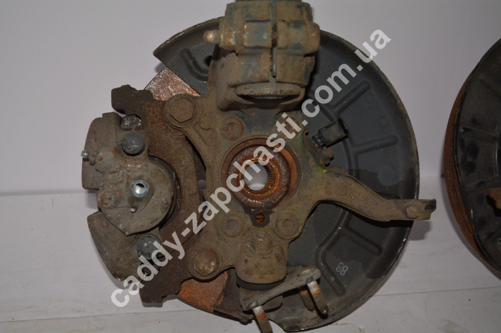 В комплект входит: амортизатор, 5-ти витковая пружина -13 мм, цапфа, тормозной диск, тормозные колодки, датчик АВS, подшипник.