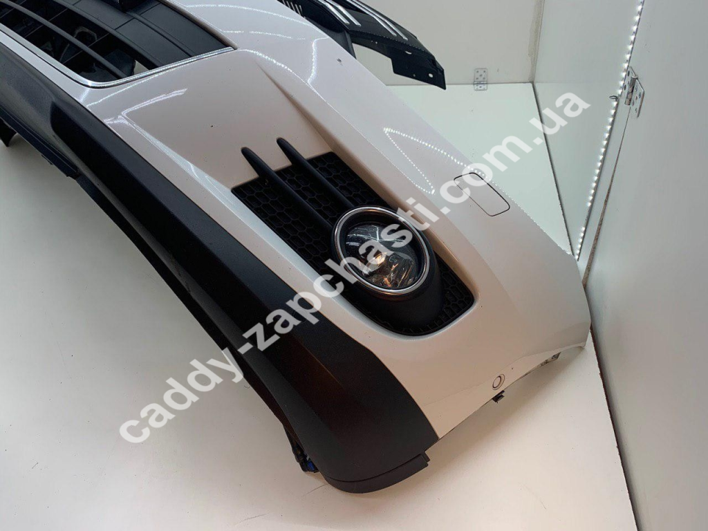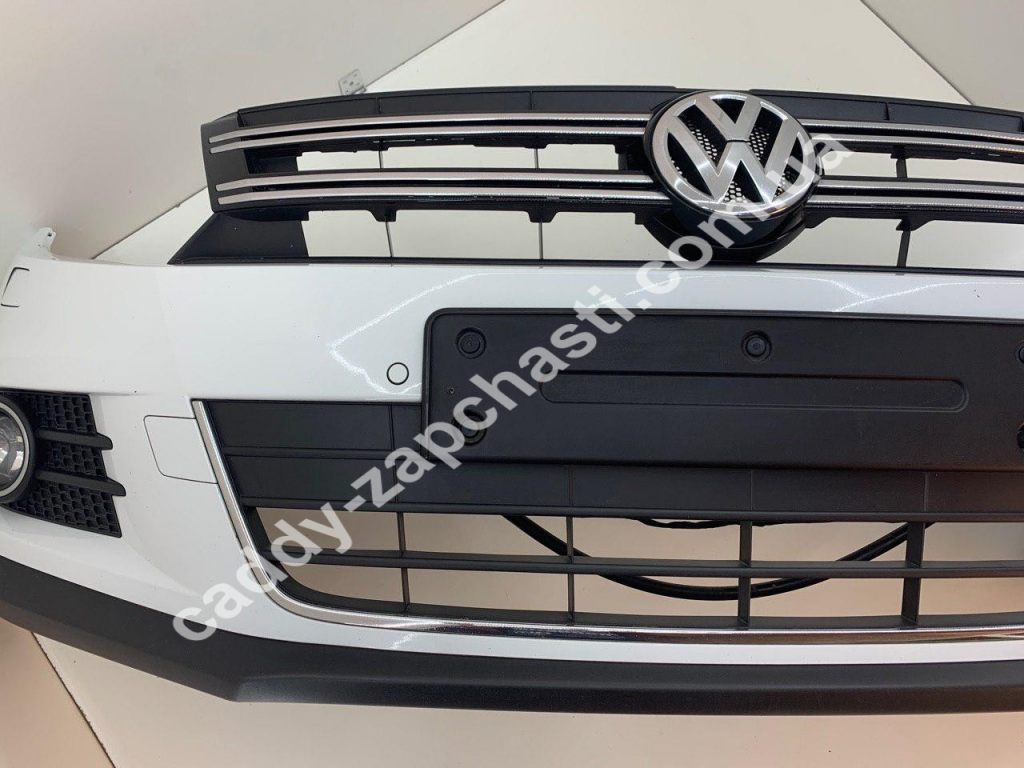 Бампер передній комплектний з парктроніками, омивачем фар та решіткою радіатора.